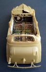 The remaining parts of the seats are made from copper wire, and some parts (pedals, gear switch, steering wheel) are made from brass. Apart from that, the kit parts where used. Some parts were thinned with the Dremel and some dents were created with my sculpting tools after the plastic was made soft using a soldering iron cautiously held above the surface.