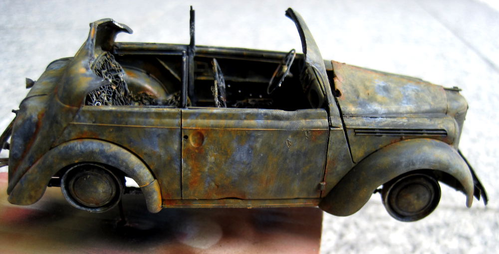 burnt out Opel painted