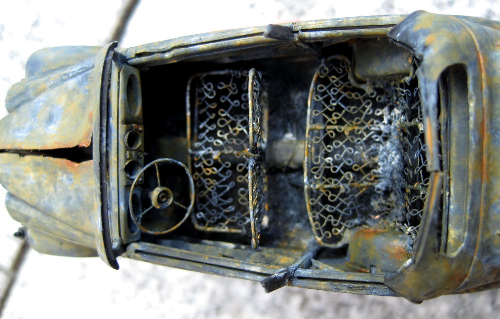 burnt out Opel painted
