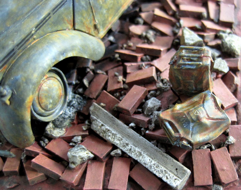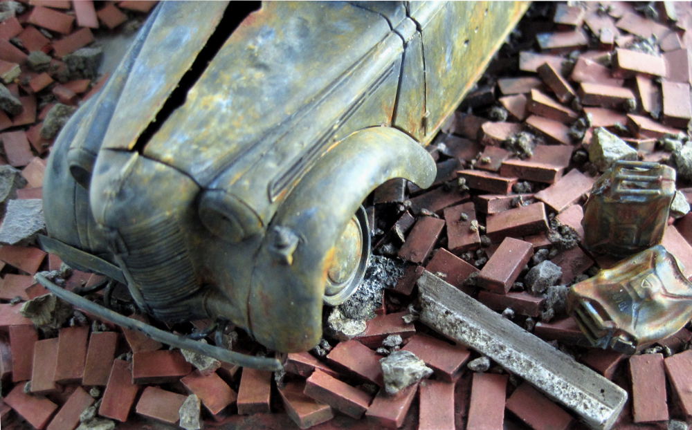 When dried, a point wash around the rivets was added. Then, some highlights on the top of the helmets were added using the Vallejo base color lightened with Deck Tan.