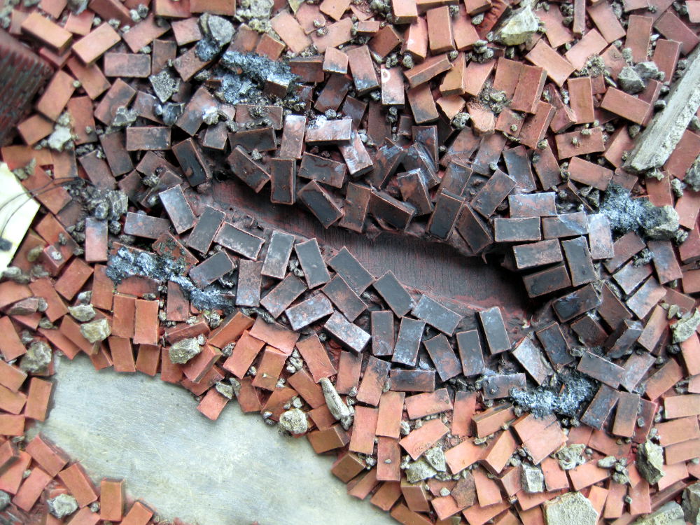 Inspired by an example from Calvin Tan (http://zyclyon.blogspot.ch/2011/09/alla-prima-wet-on-wet-with-acrylic.htm), but he is using acrylic color with drying retarder) I added tiny spots of different oils (yellow ochre, burnt umber, black, warm grey) and blended them carefully with a brush dampened with turpentine. You have to work very concentrated and stop blending in time, otherwise the helmet is covered with a single color mix. First, I tried also using blue, but this can result in some ugly greenish tint together with the yellow and orange tones.