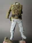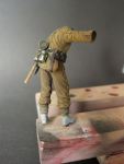 Almost everything is painted using Vallejo acrylics, only for deeper recesses (gas masket can, canteen, mess kit) a slight oil wash was used. Seams were also highlighted and shadowed using acrylics.
