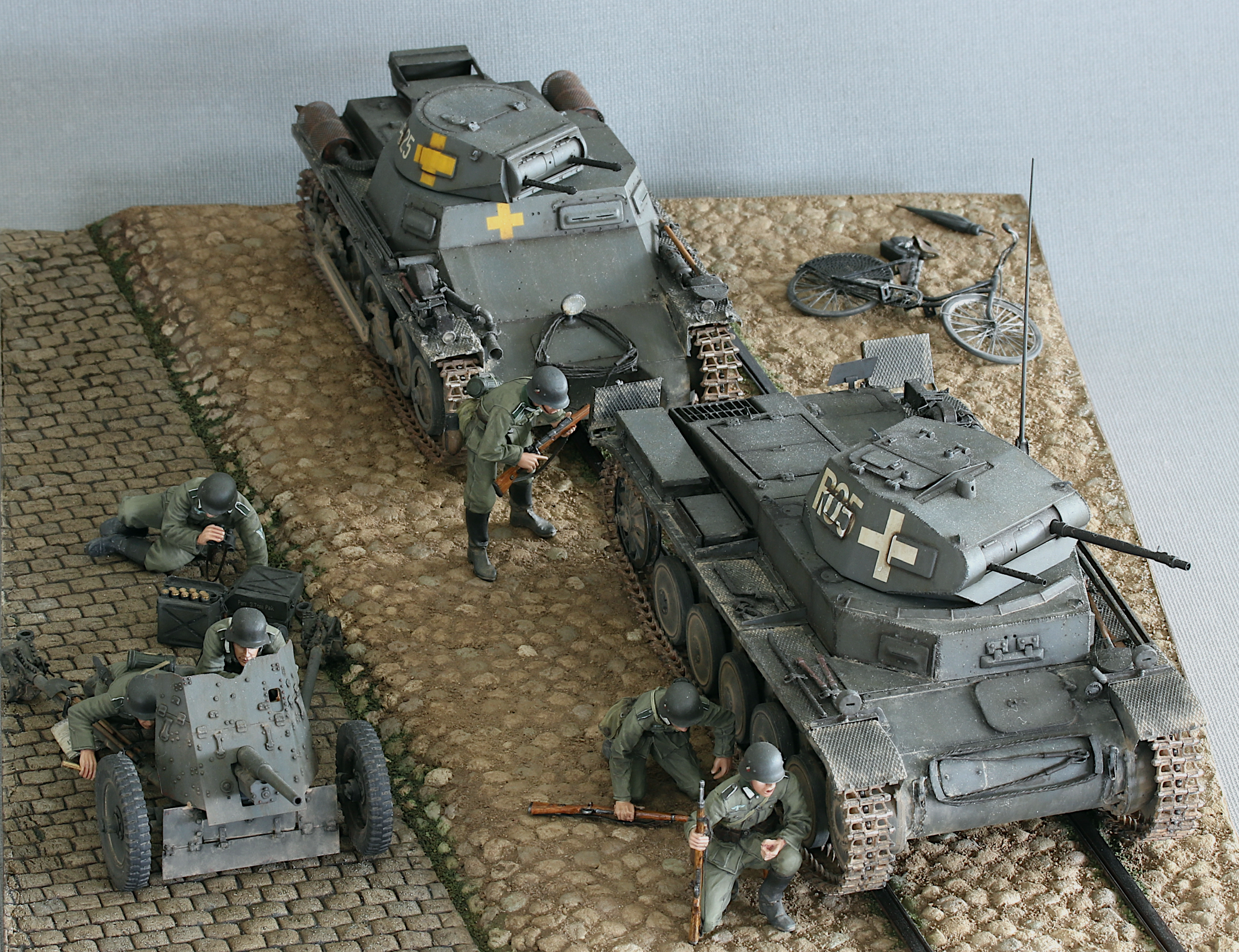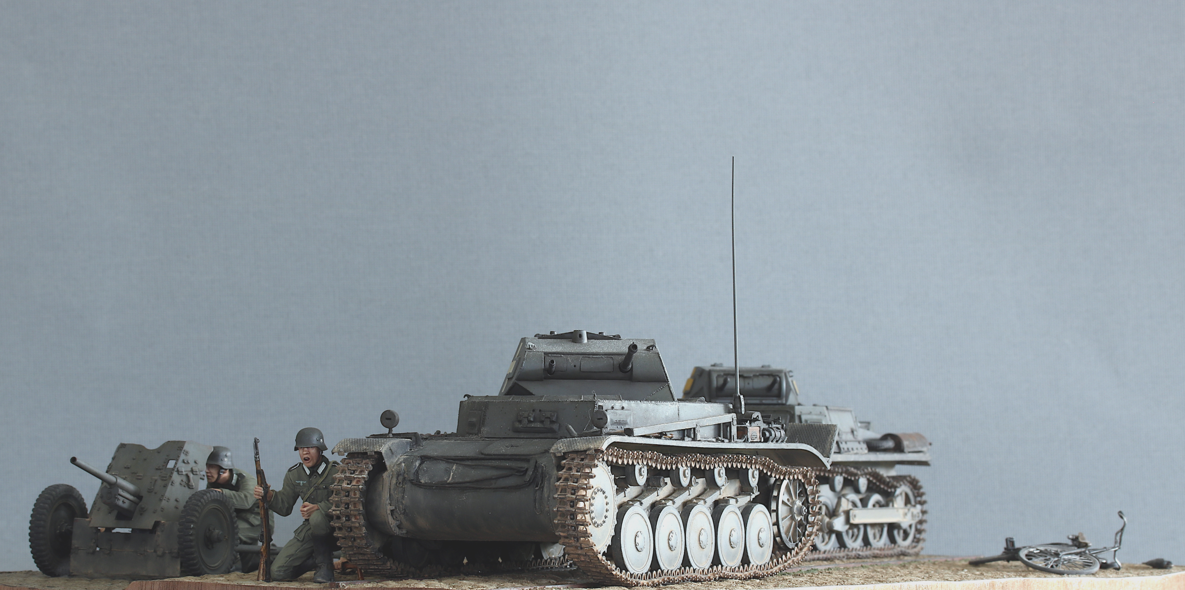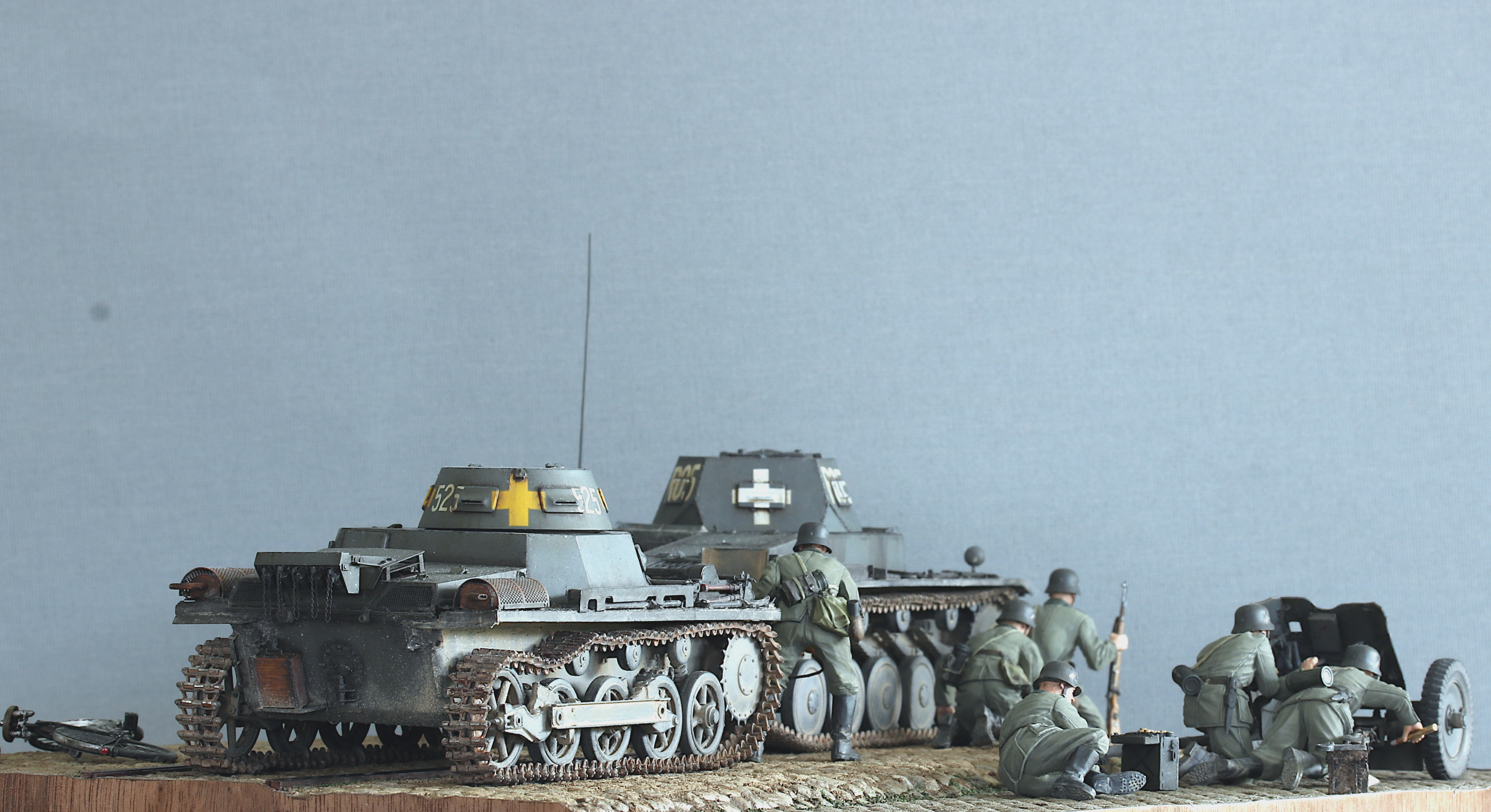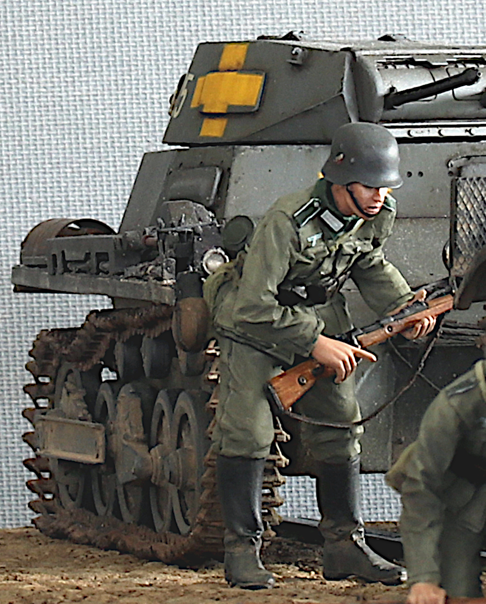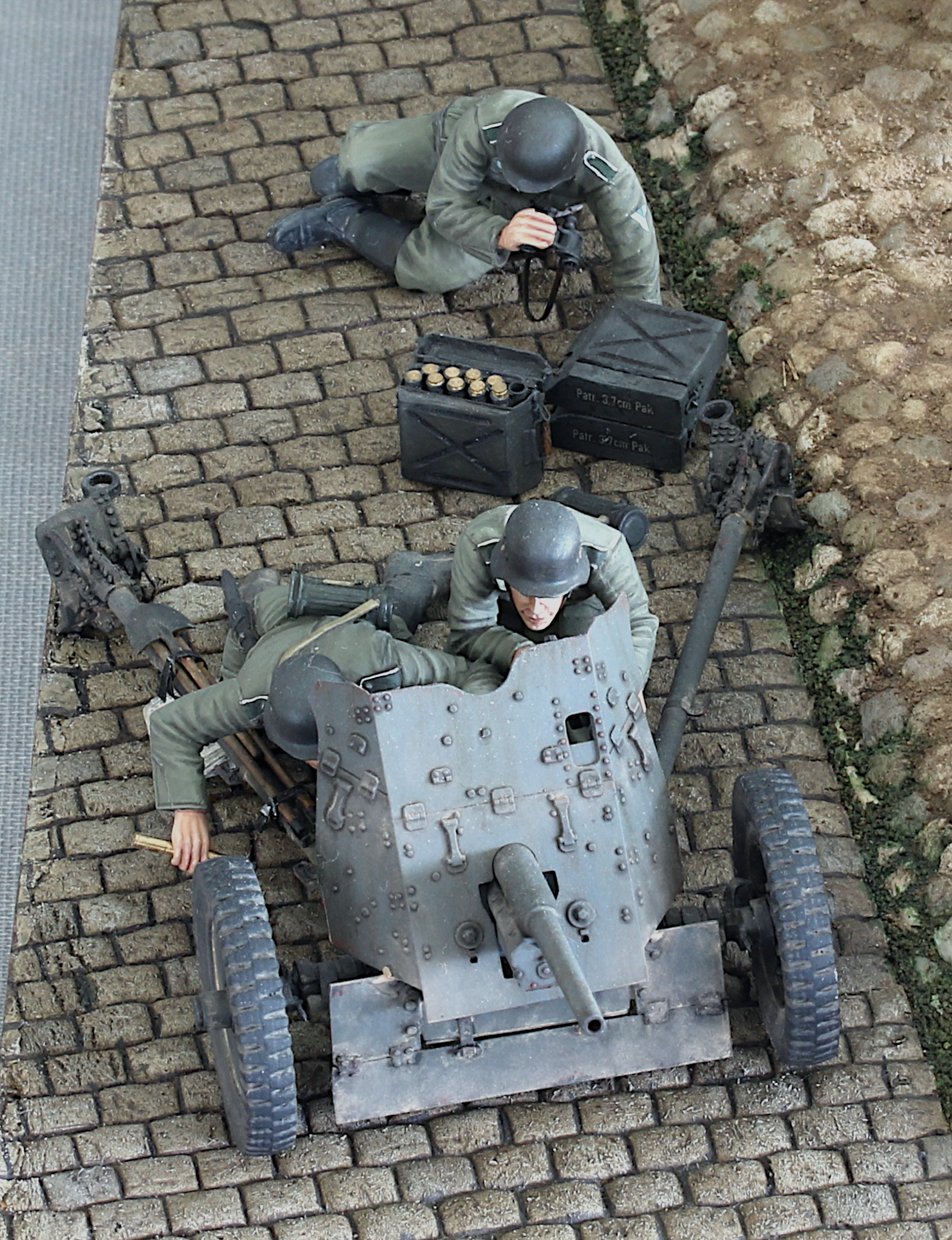 The kit is from Dragon, with a Aber PE set added. I also added two figures from Panzer Art, and on the base I put three figures from a Stalingrad set I also had for quite some time. They have very nice poses, but miss some of the fine details for example Alpine offerings exhibit.
