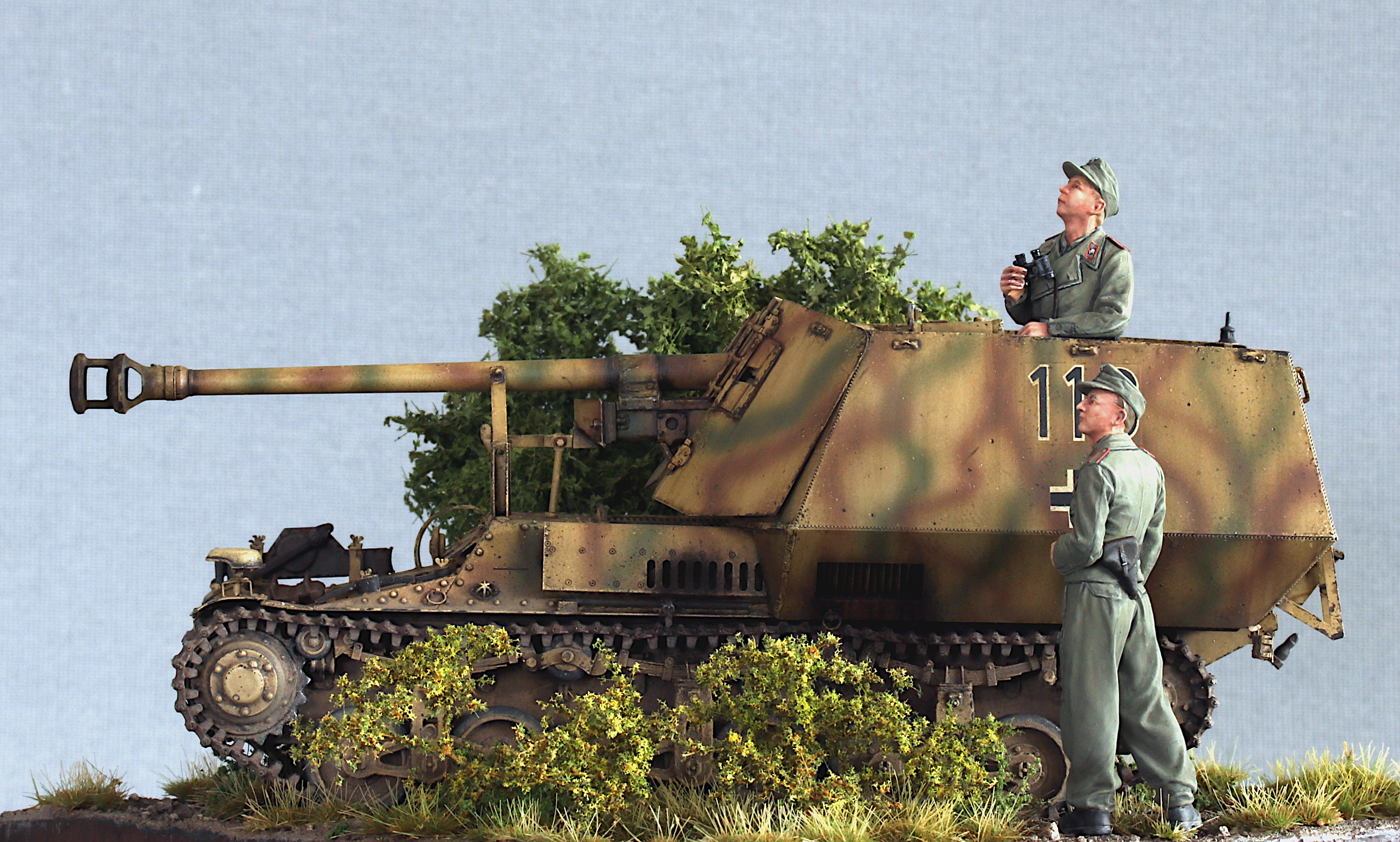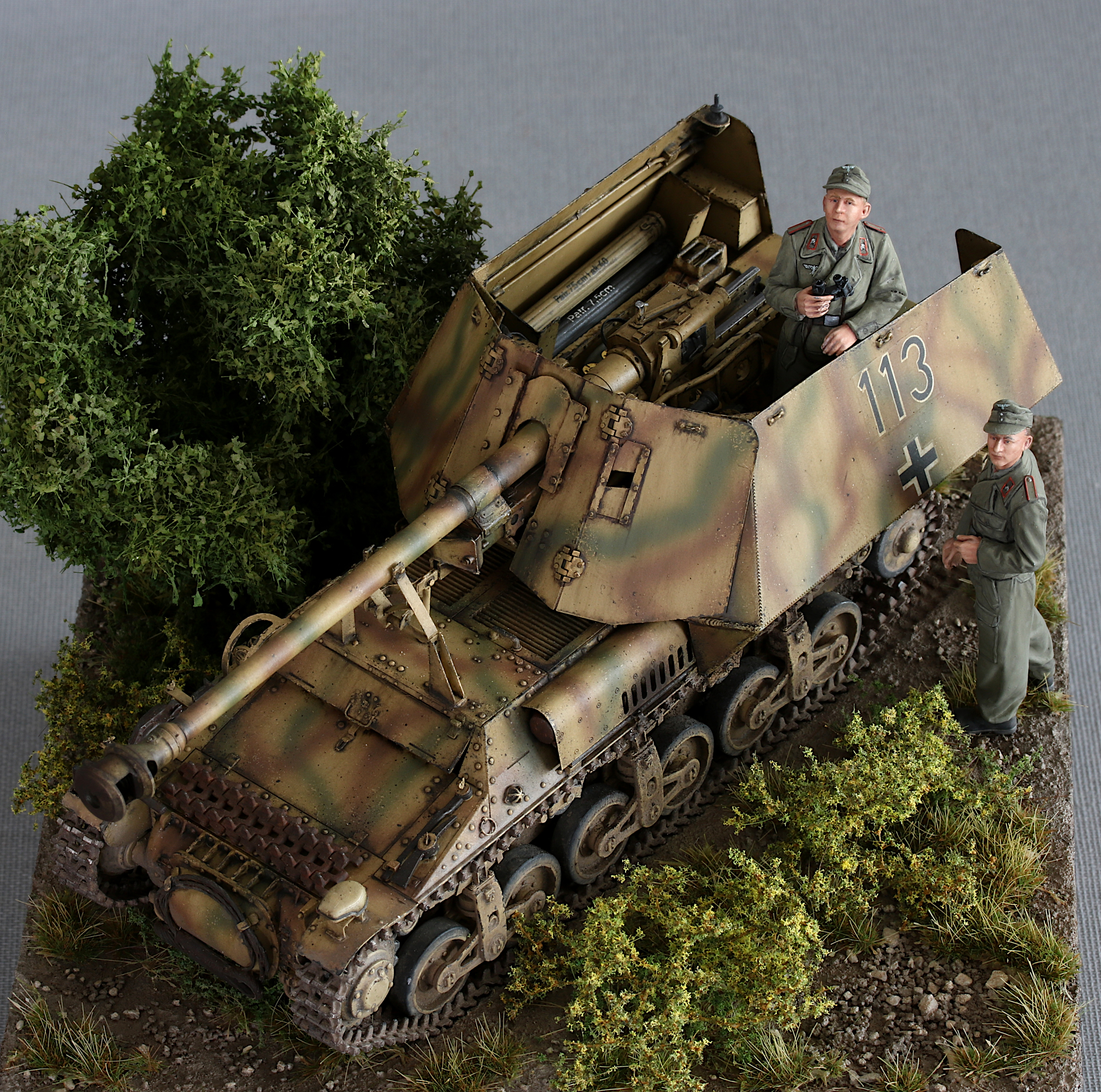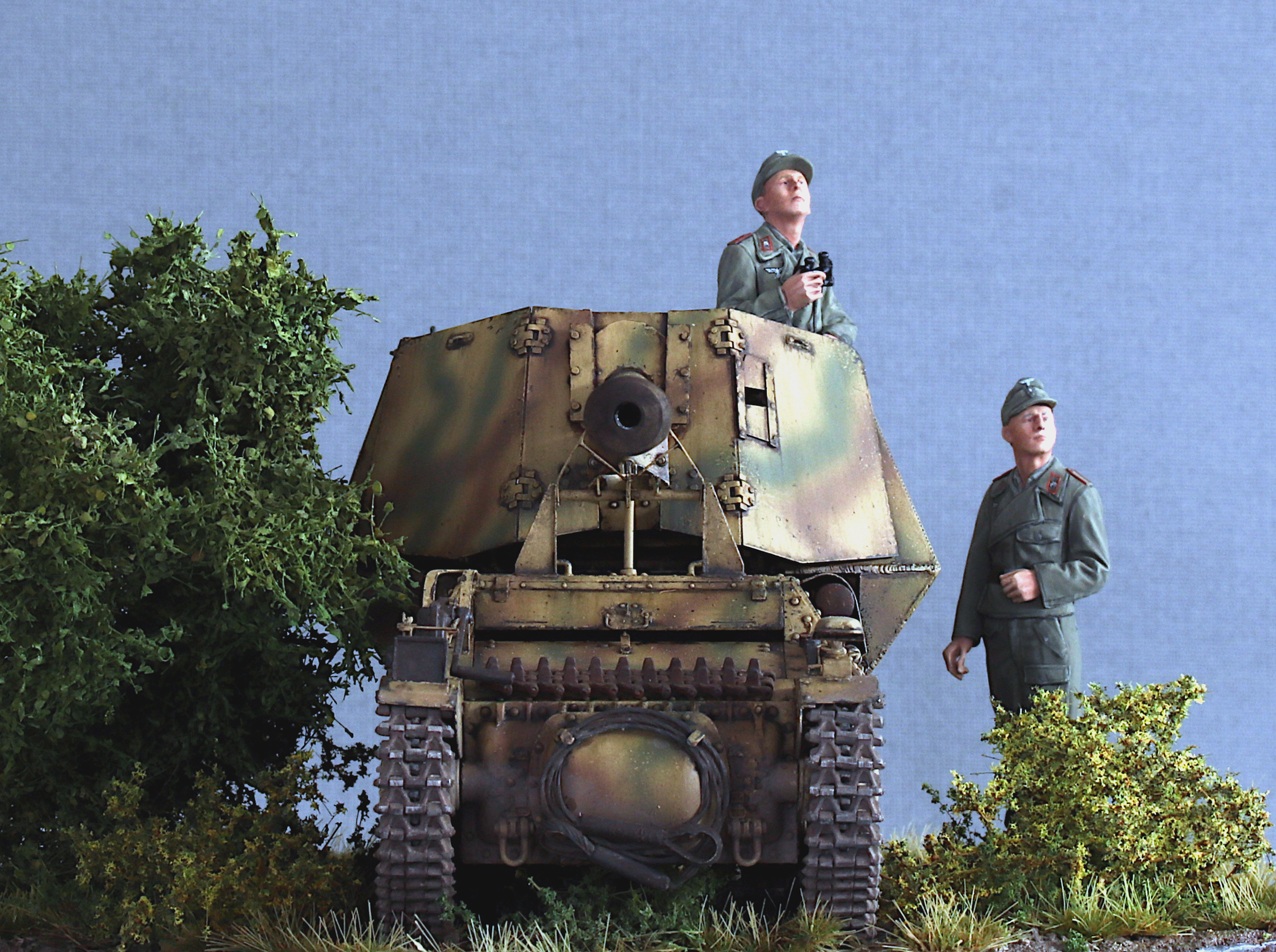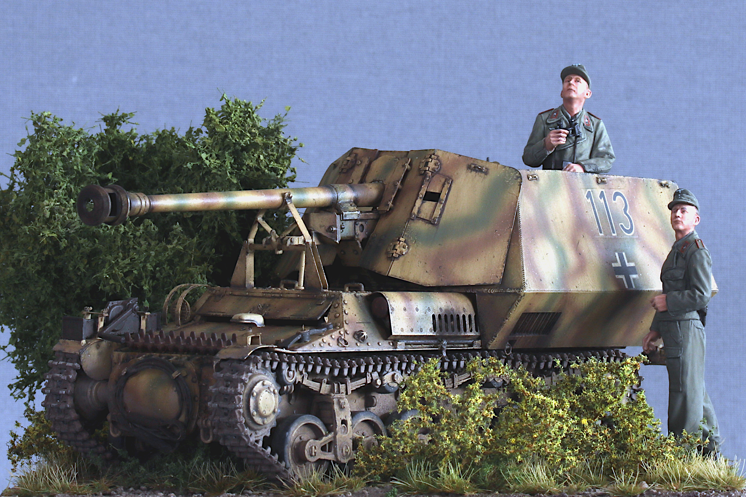 I also added the original Tamiya figures included in the kit. They have very nice poses and very naturally looking folds, but otherwise have very little detail. I was starting to work on resin figures from Royal Model in parallel (the very nicely done Ferdinand crew), which clearly highlighted the differences in detail… but the Tamiya figures are ok.
