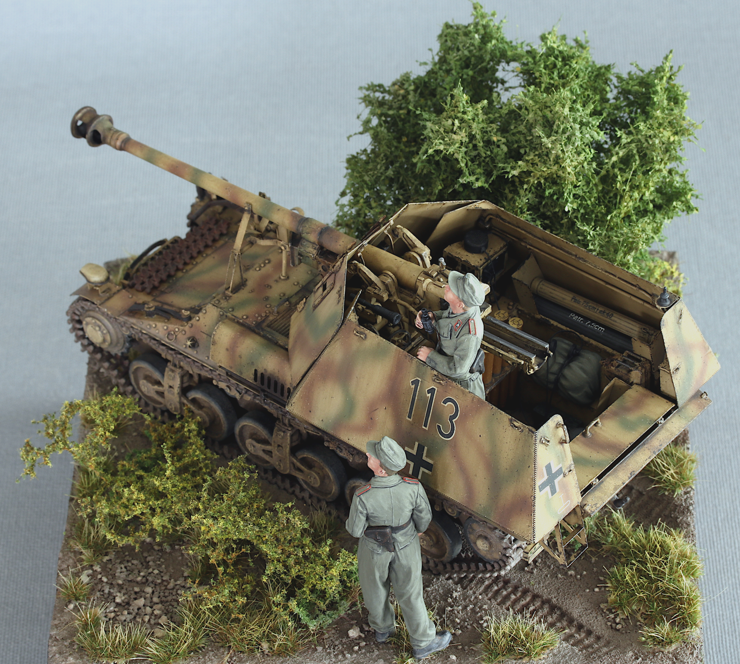 Another tank hunter (although technically more a motorized anti-tank gun) that I built is the Marder I, featuring a 75mm Pak 40 on a french chassis, built on the base of the Tracteur Blindé 37L (Lorraine), a French artillery tractor/armoured personnel carrier of which the Germans had acquired more than three hundred after the Fall of France in 1940.