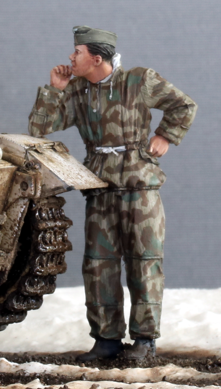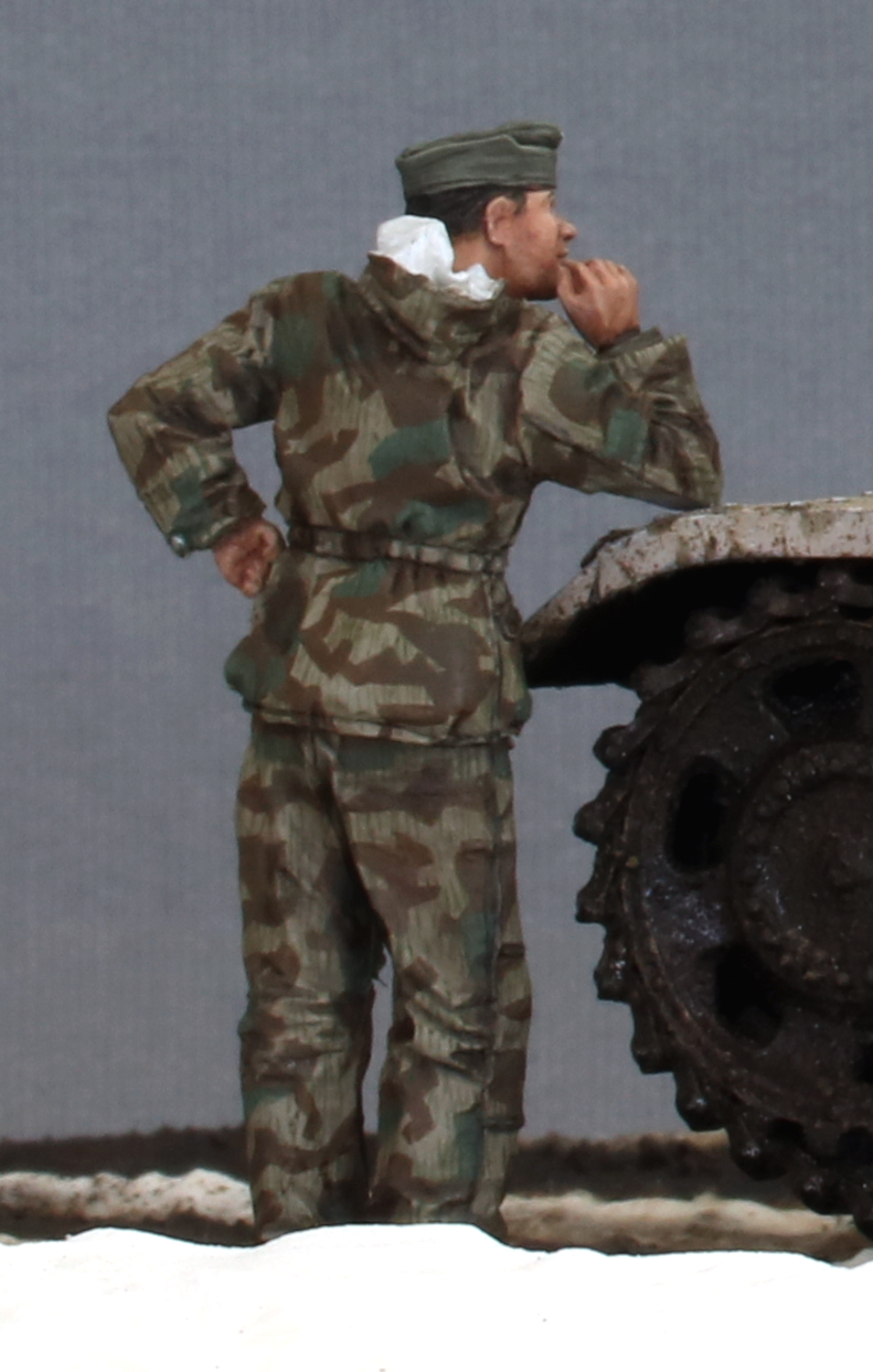The figures have nice poses and are a really good addition to the vehicle. The only downside of Stalingrad figures is that they don’t have the quality of e.g. Alpine offerings, so some cleanup using Magic Sculpt was required. There is one guy wearing a hood over his head, and the face was so badly moulded that I cut of the head, replaced it with an Hornet offering and resculpted the hood.